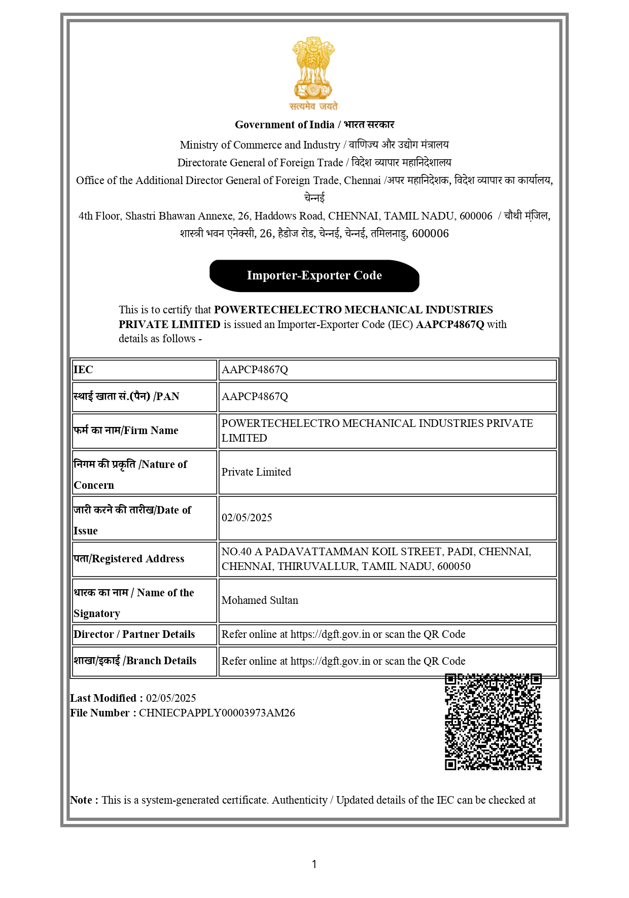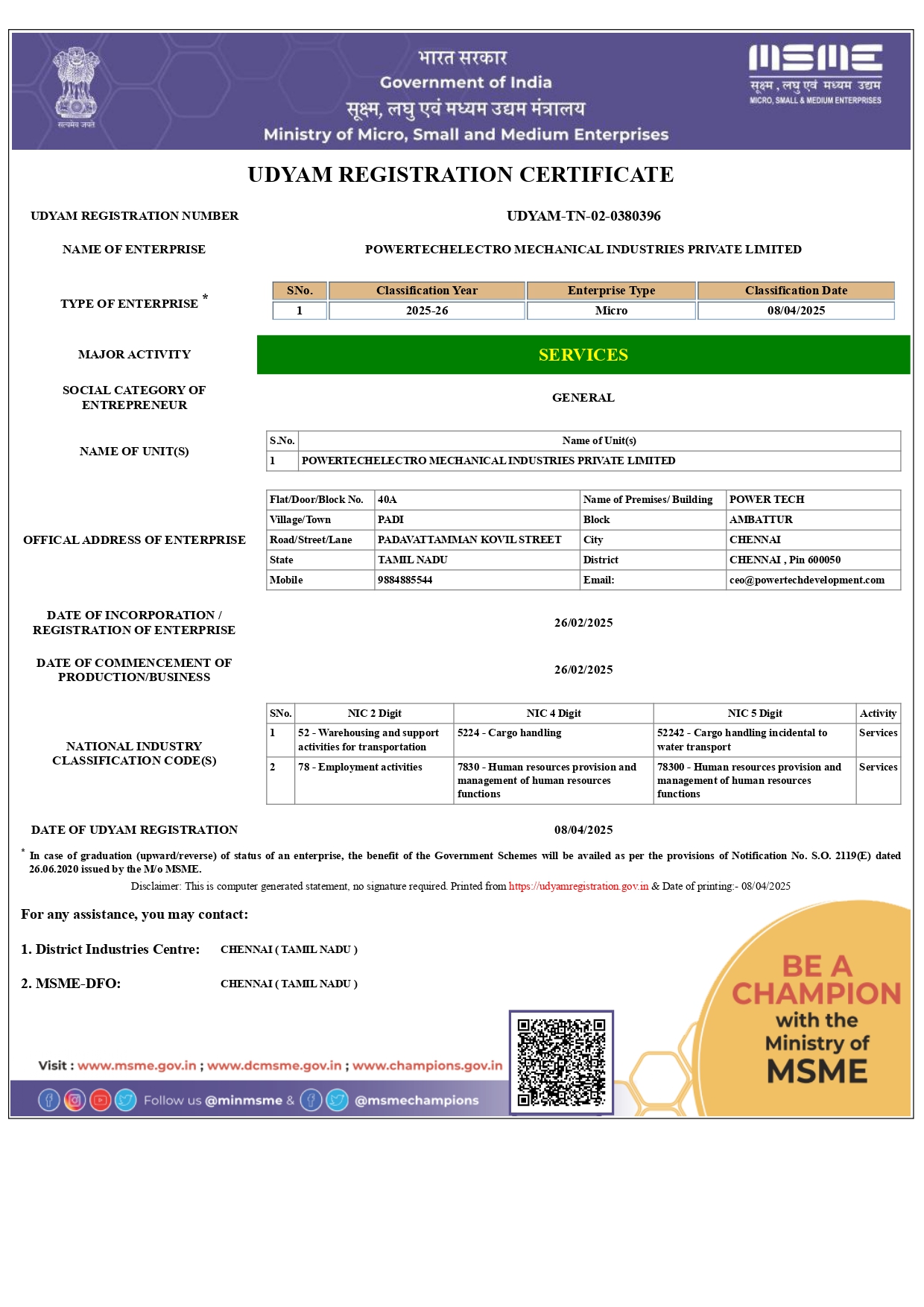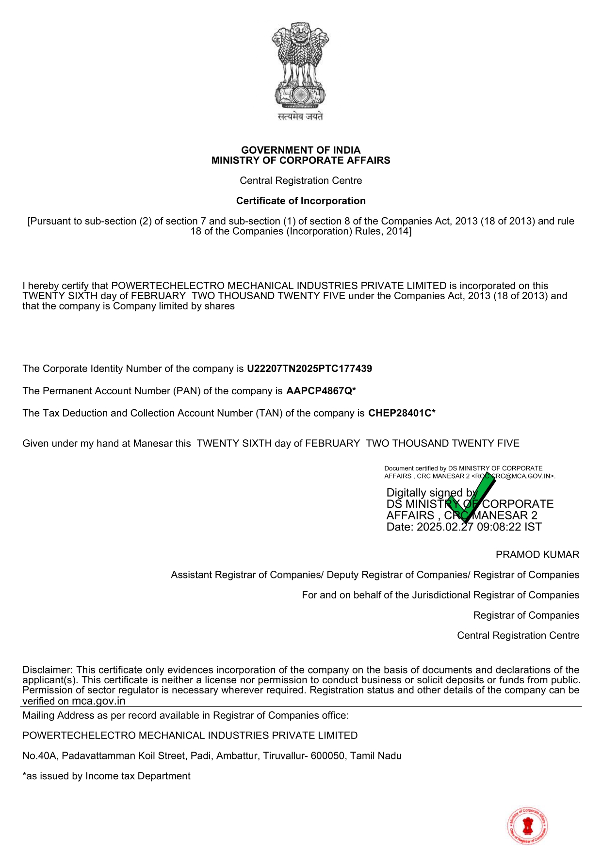 Powertechelectro Mechanical Industries Pvt Ltd Company Incorp