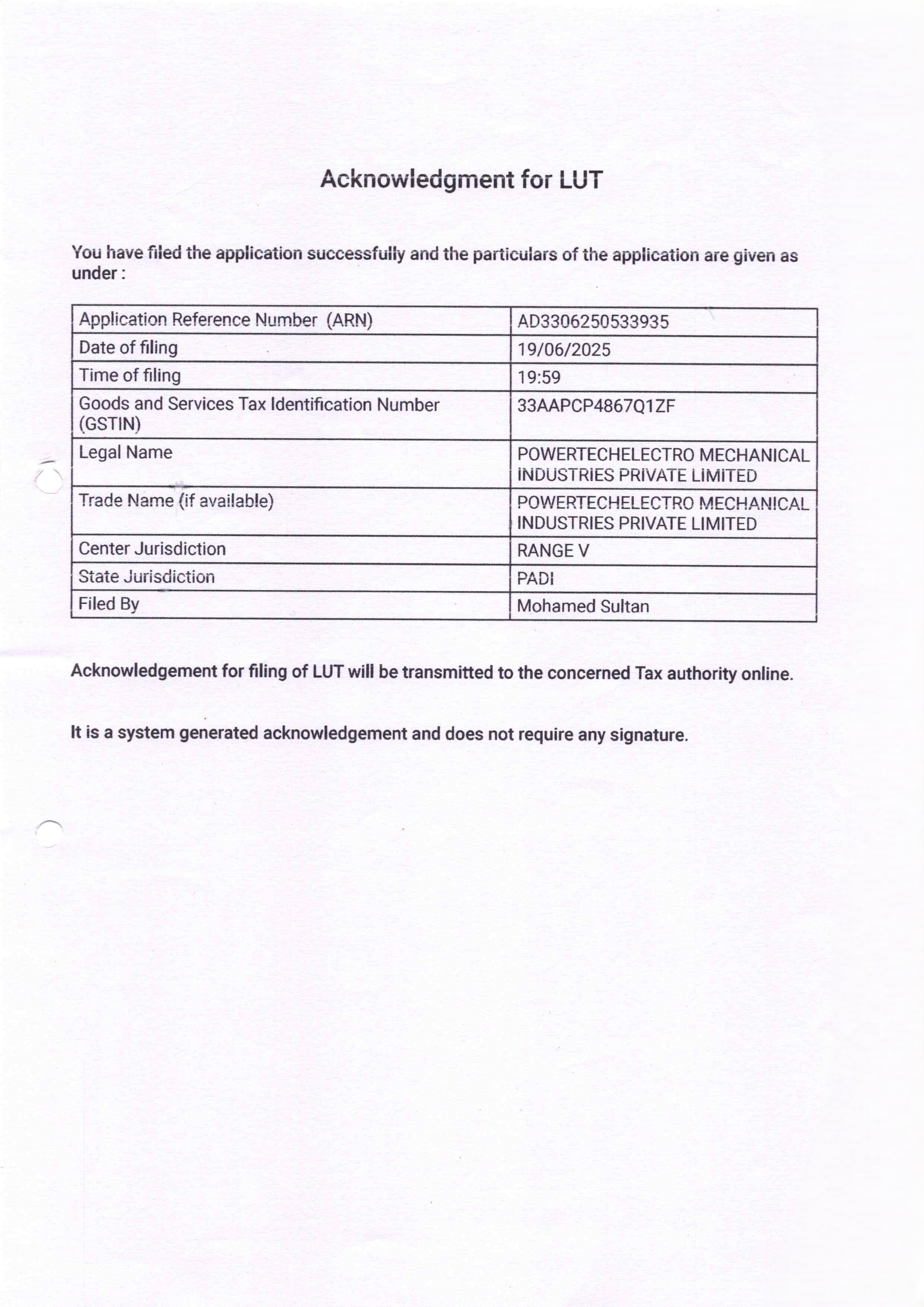 PEMI - GST Certificate